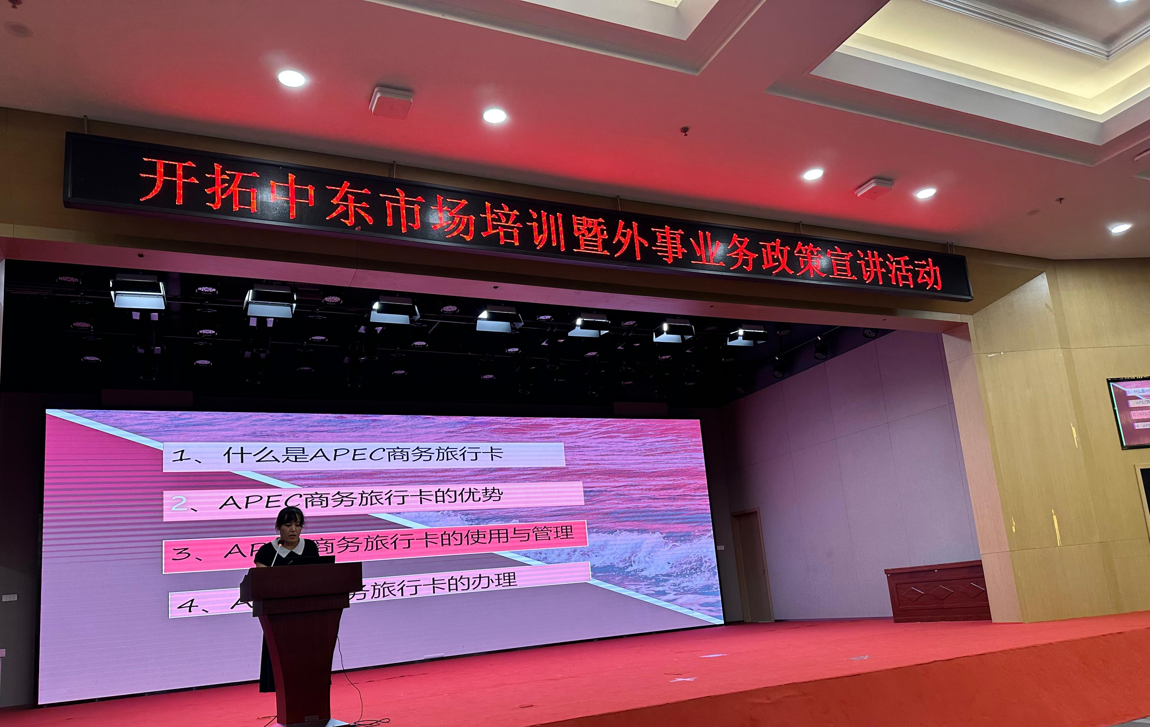 9月20日,市外办联合市商城管委会、市商务局、市贸促会等相关部门举办开拓中东市场专题培训暨外事业务政策宣讲活动。活动邀请义乌市山东商会会长马文兵讲解了中东国家市场概况及风土人情、涉外礼仪等,并与企业分享了开拓市场的经验和建议,现场为企业答疑解惑。同时还开展了APEC商务旅行卡政策解读、外语语言培训、境外参展注意事项解读等活动。
